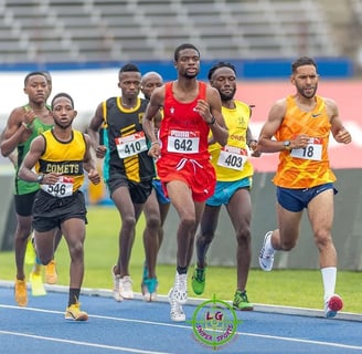 Amanie Campbell (second left), Comets Club, competes in the 1,500 meters Men, at the JAAA National Trails, National Stadium, Kingston, June 15.