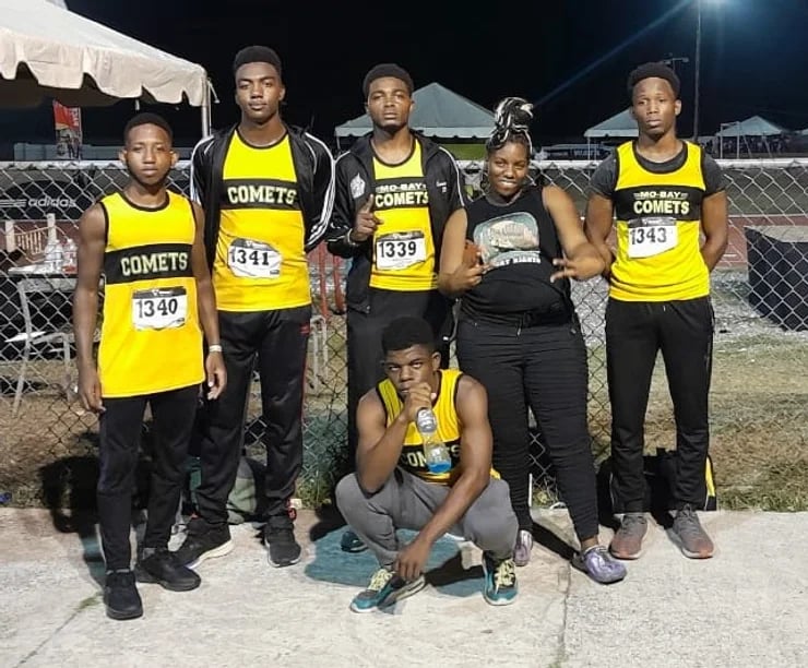 Amanie Campbell (captain), Ajani Bernard, Chavar Chisholm, Kimberley Edwards, Ronald Miller, Xavian Fraser, at the GC Foster College Development Meet.
