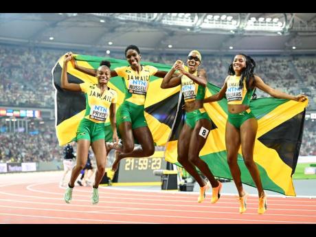 Member of the Jamaican female quarter that won the silver medal in the 4x4 meters relay at the WAC in Budapest, Hungary, August 2023.